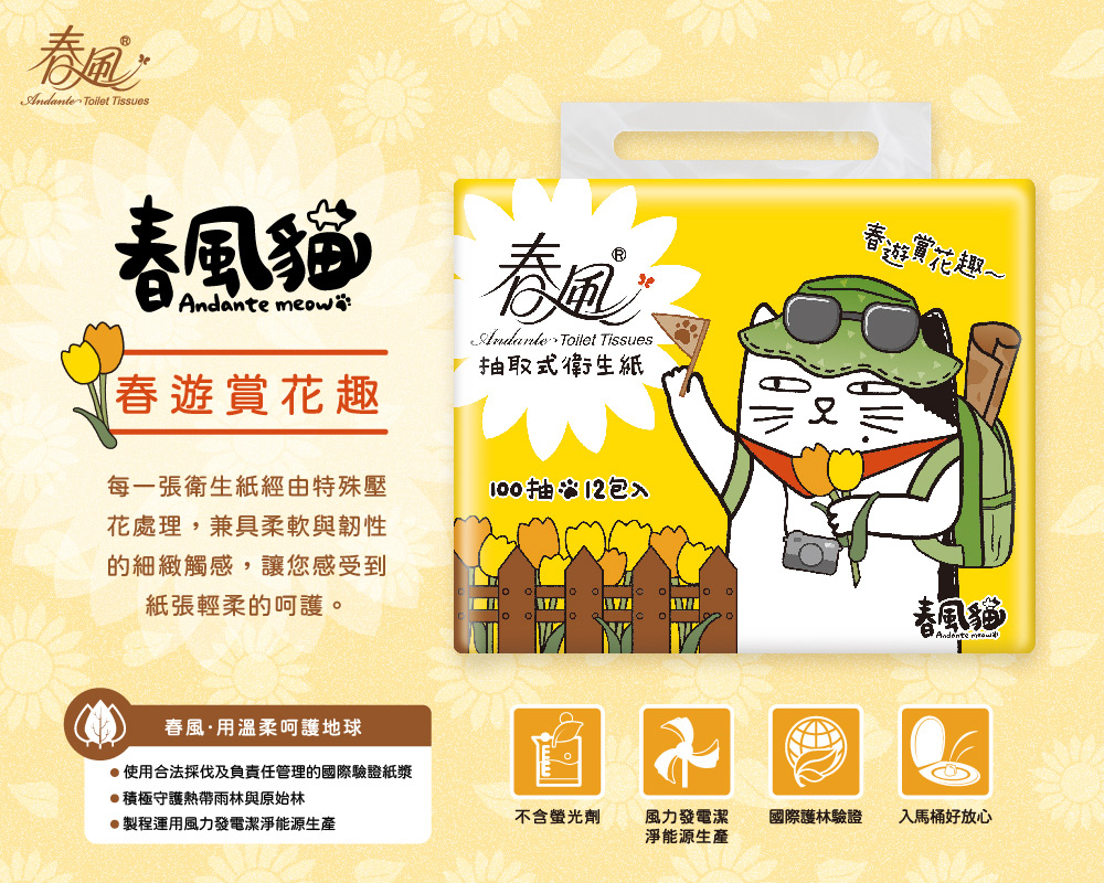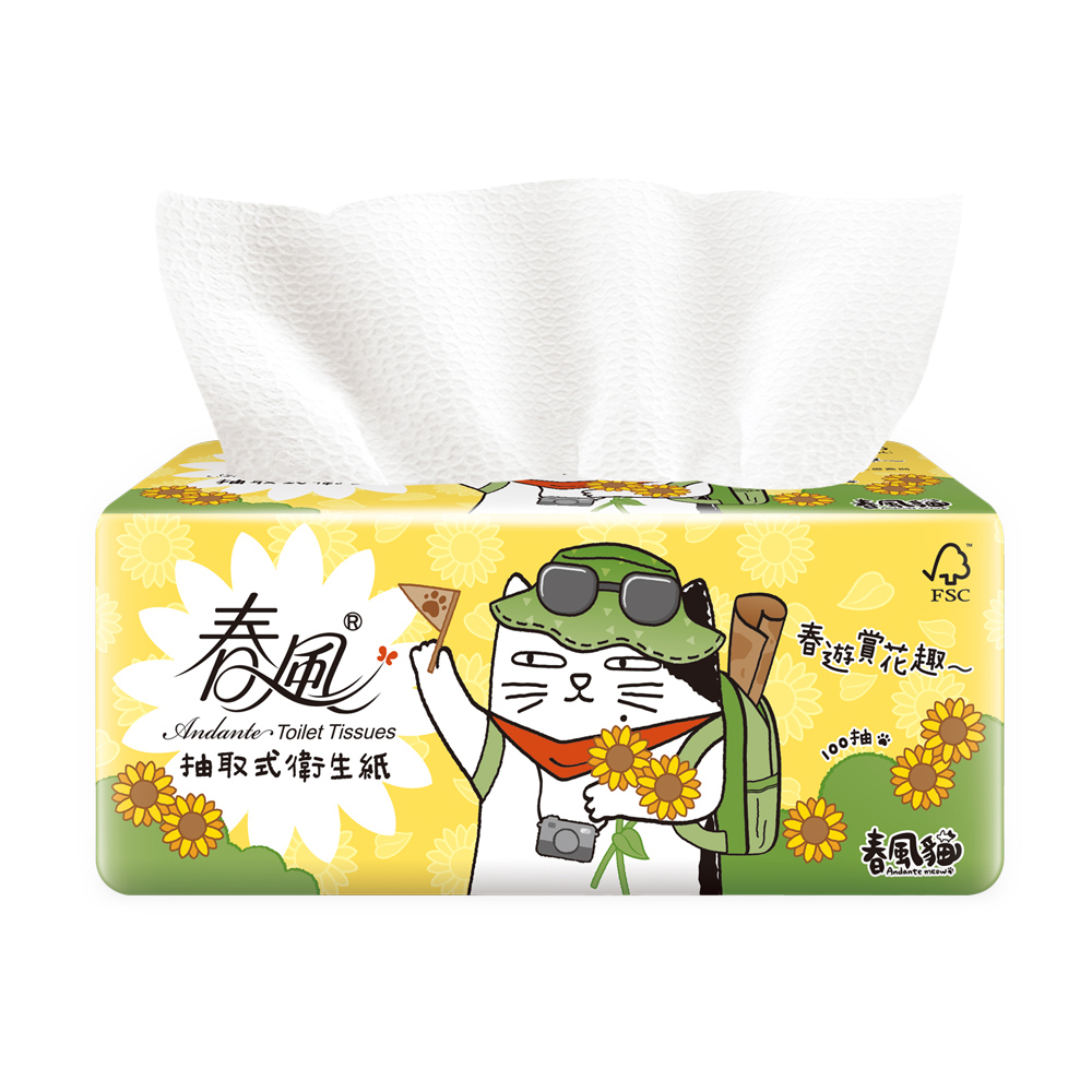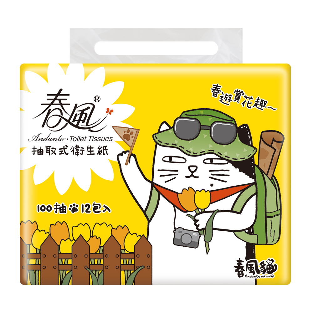 商品名稱:春風 春風貓 抽取式衛生紙 100抽x12包x6串/箱 共72包